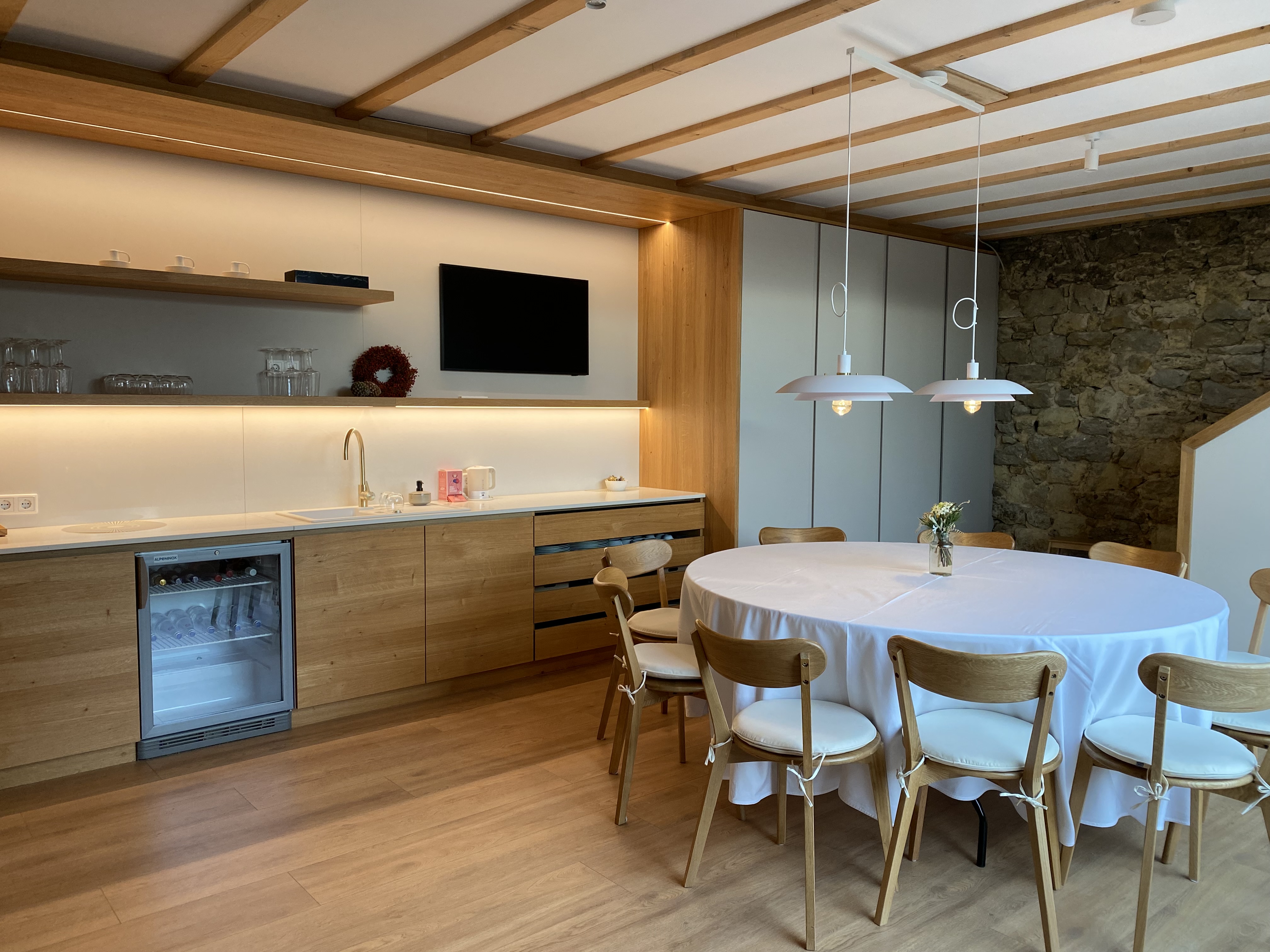 In unserem Gästehaus sollen Sie sich wohl fühlen. Heimelig und im besten Sinne wie zu Hause. Aber eben ohne Alltag, ohne Pflichten und ewiges Müssen. Wenn Sie die Begegnung suchen, können Sie sich beispielsweise zu einer Weinprobe anmelden oder einen Tisch im Restaurant reservieren. Besonders schön finden wir auch die Gästeküche als Begegnungsort.